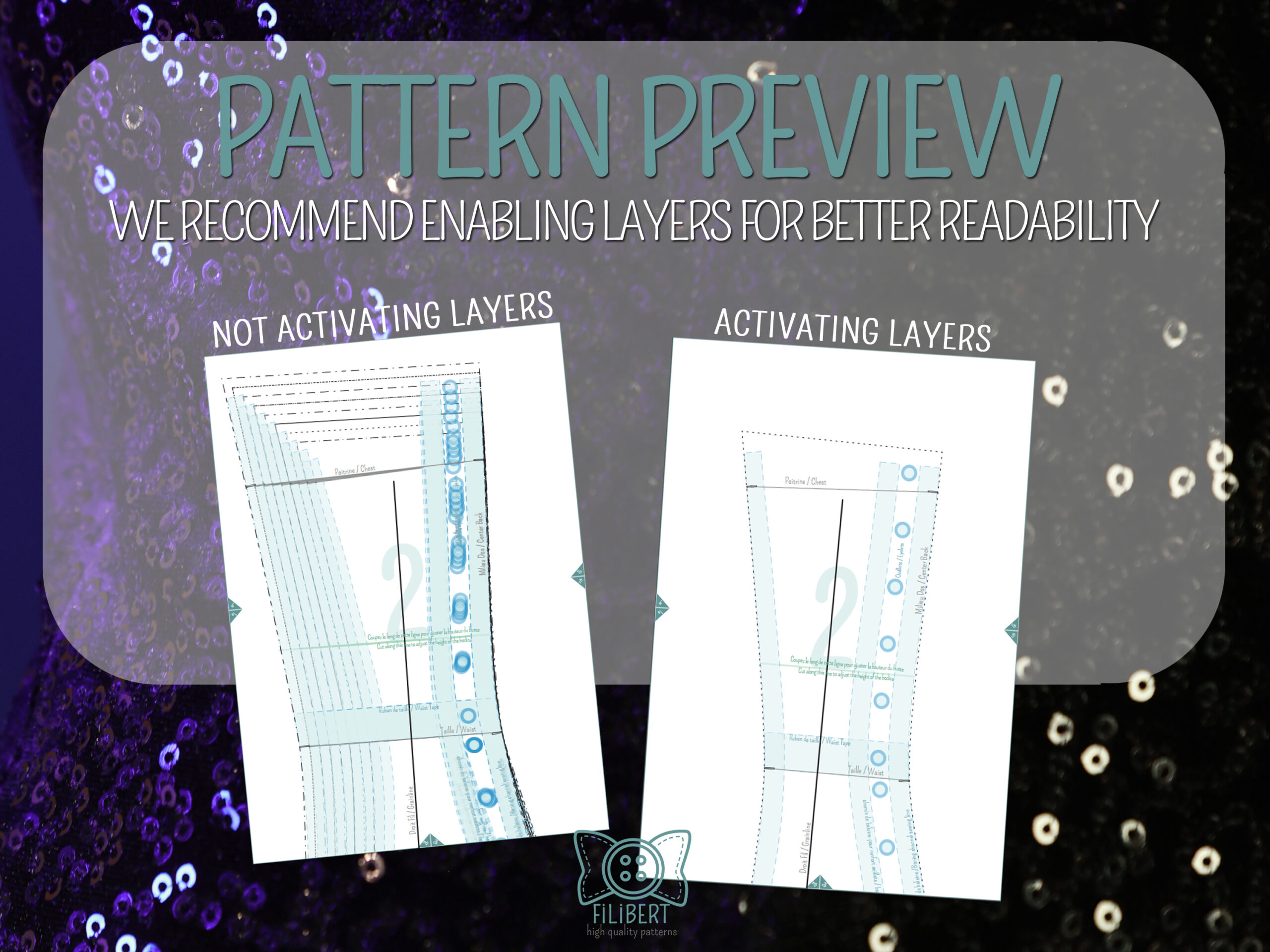 👉 We strongly recommend using layers to make the pattern easier to read before printing. Here are a few free programs that support PDF layers :