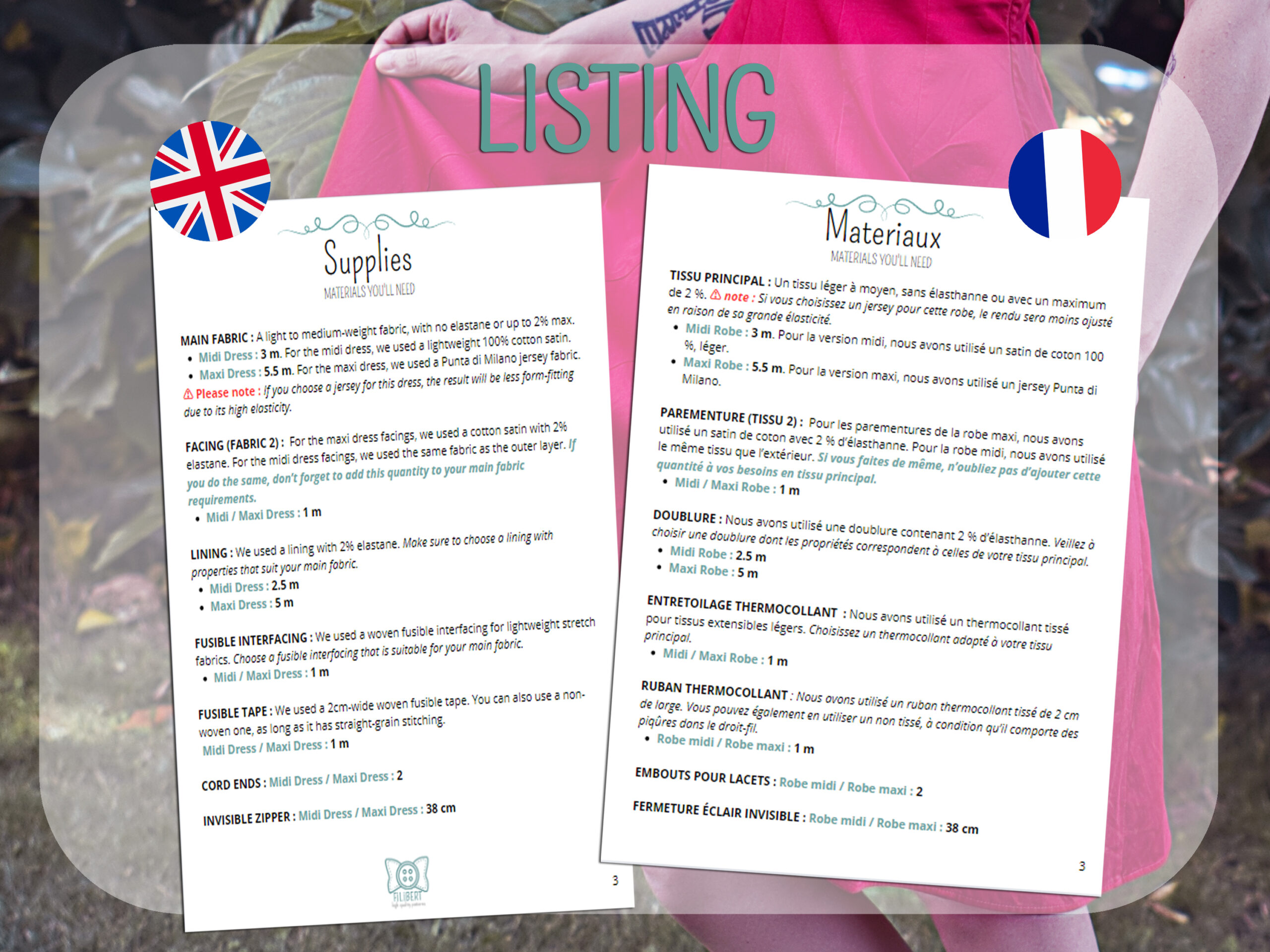 - 1 ZIP file containing PDFs for the dresses. Lining and main fabric are separated ! Printing formats A4/letter
