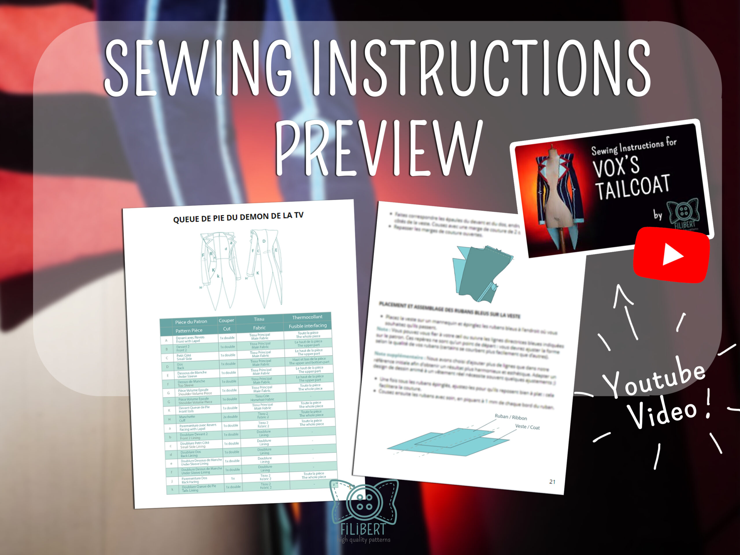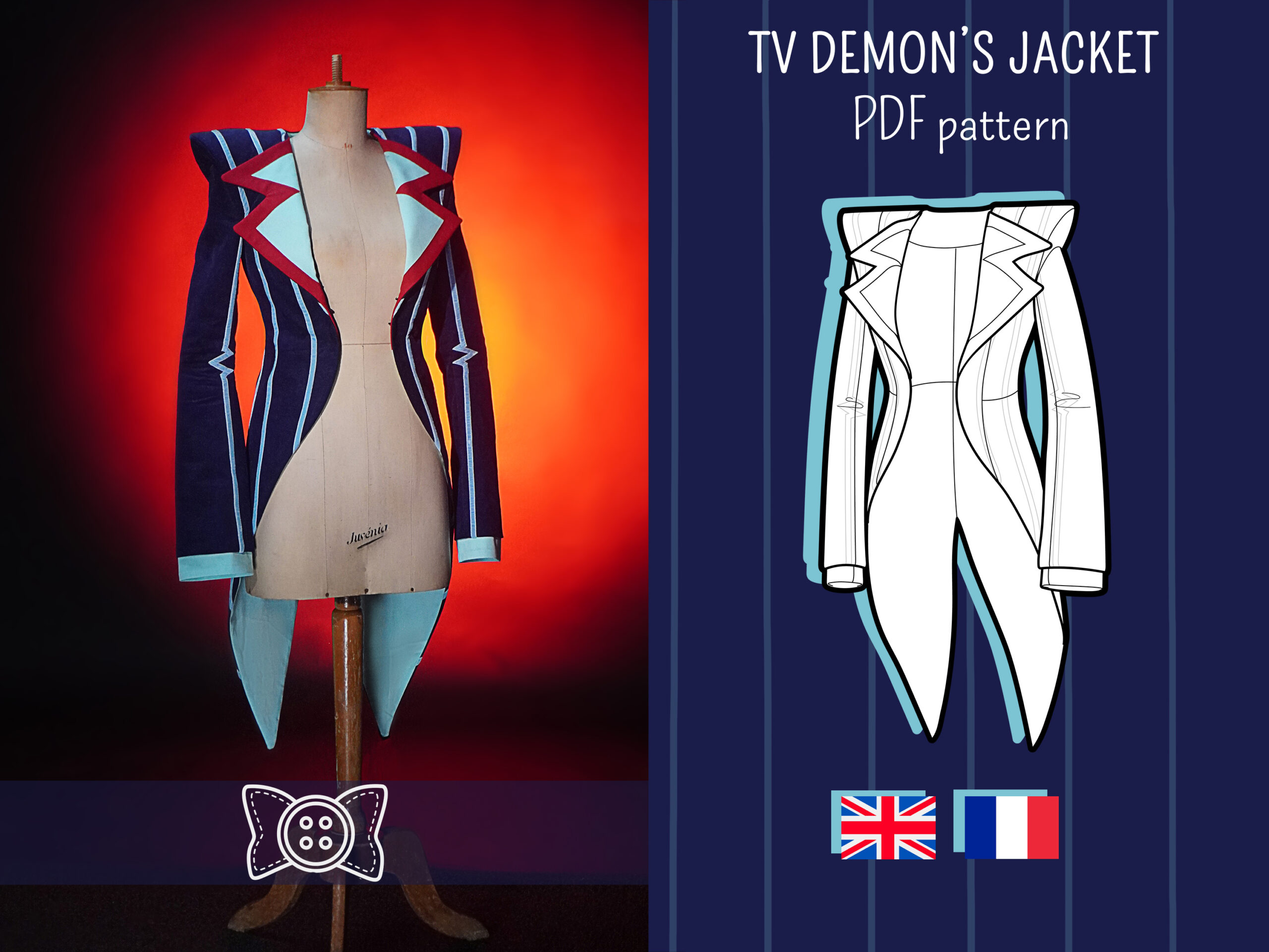 This digital sewing pattern has been designed to allow you to create Vox's tailcoat from Hazbin Hotel. A Victorian-inspired jacket, very fitted. Dramatic shoulder pads and elegant tail.