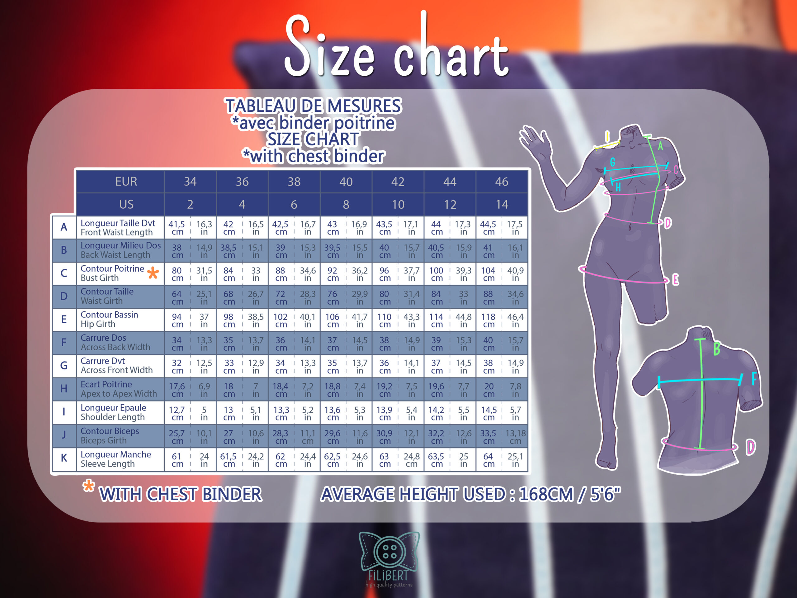 ⚠️ This pattern has been adjusted to be worn with a BINDER (Without a binder, it is recommended not to exceed cup size B or to enlarge the pattern to your size)